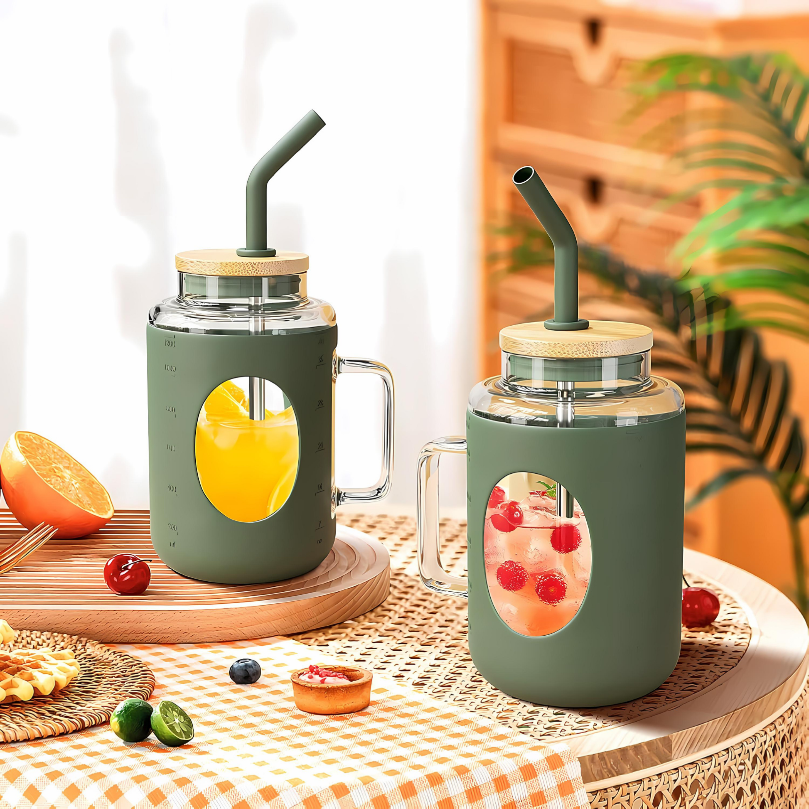 Está diseñado para ofrecerte la mejor experiencia de uso. Fabricado con vidrio de borosilicato espesado, garantiza durabilidad y resistencia a impactos. Su funda protectora de silicona no solo proporciona un agarre antideslizante, sino que también añade un toque de modernidad. La tapa de bambú natural con pajilla integrada asegura un cierre hermético y evita derrames, haciendo que sea fácil de llevar a cualquier parte. Además, el marcador de capacidad te permite seguir tu consumo de agua, ayudándote a mantenerte hidratado a lo largo del día.