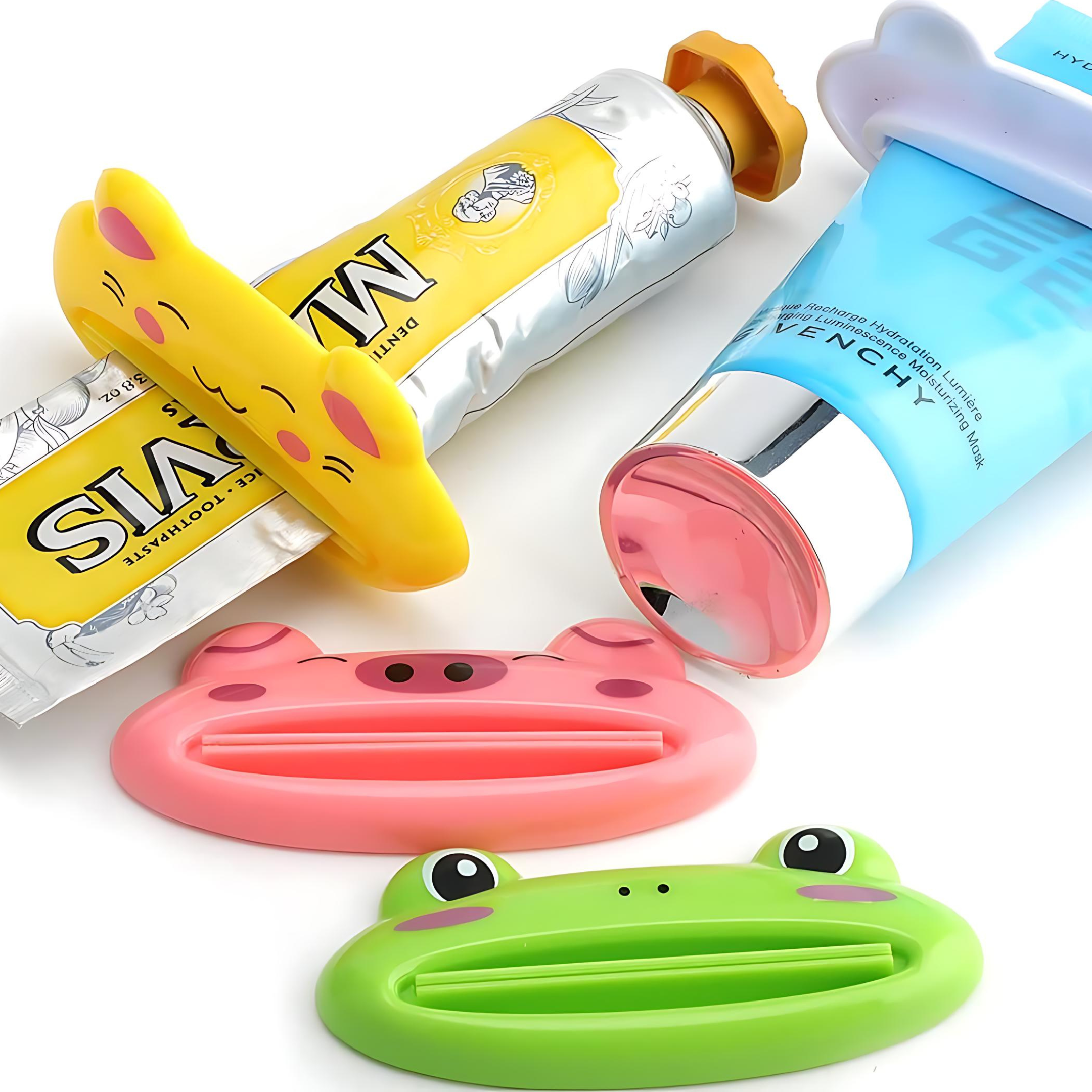 ¡Dile adiós al desperdicio de pasta de dientes o cremas con este adorable pack de 4 exprimidores en forma de animalitos! Son perfectos para exprimir hasta la última gota de tus productos y hacerlo de una manera divertida. Incluye un sapito, un osito panda, un gatito y un cerdito. ¡Ideal para el baño o la cocina!